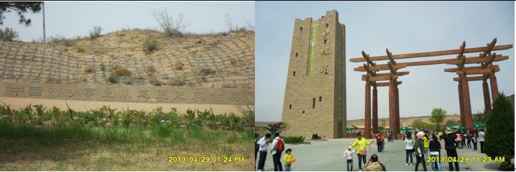 沙坡頭早期旅游景點(diǎn)全部位于黃河區(qū),由于多次來過沙坡頭,我們放棄了老景區(qū)沙坡鳴鐘、沙坡古渡、九曲古渡、黃河水車、《風(fēng)雨沙坡頭》影視基地等景點(diǎn)游玩,從黃河懸索橋返回黃河?xùn)|岸,吃了點(diǎn)涼面,直接向沙坡頭旅游沙漠區(qū)(北區(qū))進(jìn)發(fā),穿過林蔭小道,欣賞了沙坡碑林,繞過沙坡馬場(chǎng),開始爬沙。光著的腳丫踩在黃沙上,被太陽(yáng)曬得發(fā)熱的黃沙按摩著腳底,每向上踏一步,就會(huì)隨著黃沙向下滑下一步,歷經(jīng)艱辛,終于爬到黃沙坡頭,坐在棧道邊上休息片刻,穿好鞋襪,站在王維觀景臺(tái)上向南眺望,沙坡頭南景區(qū)全貌盡收眼底,遠(yuǎn)處的黃河飛索上有游客在飛過黃河,有大膽的游客在玩黃河蹦極、滑沙中心滑道不時(shí)有游客像滑水一樣滑到坡底,白馬拉韁的雕像矗立在黃河水中。